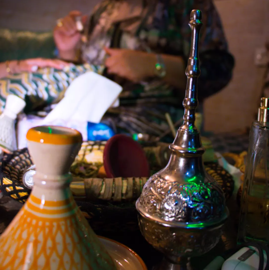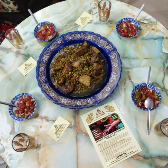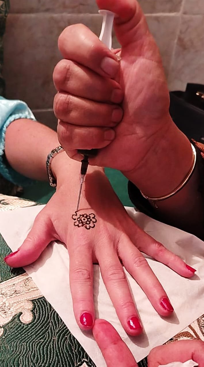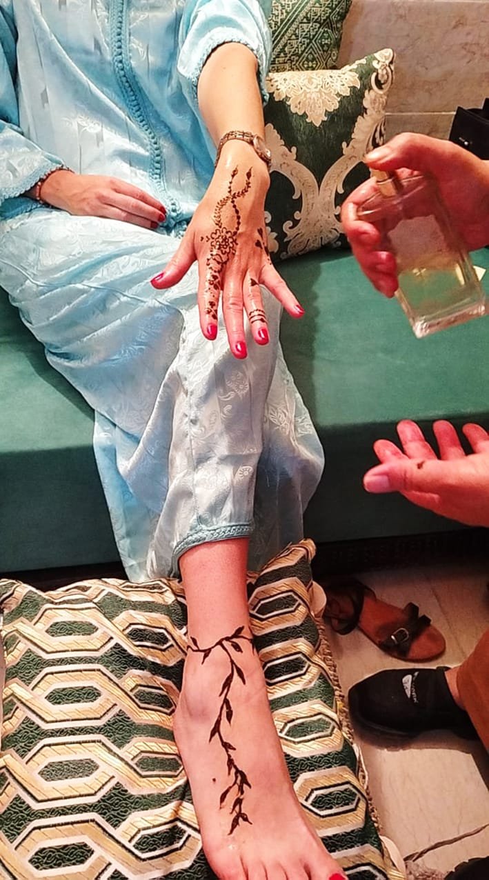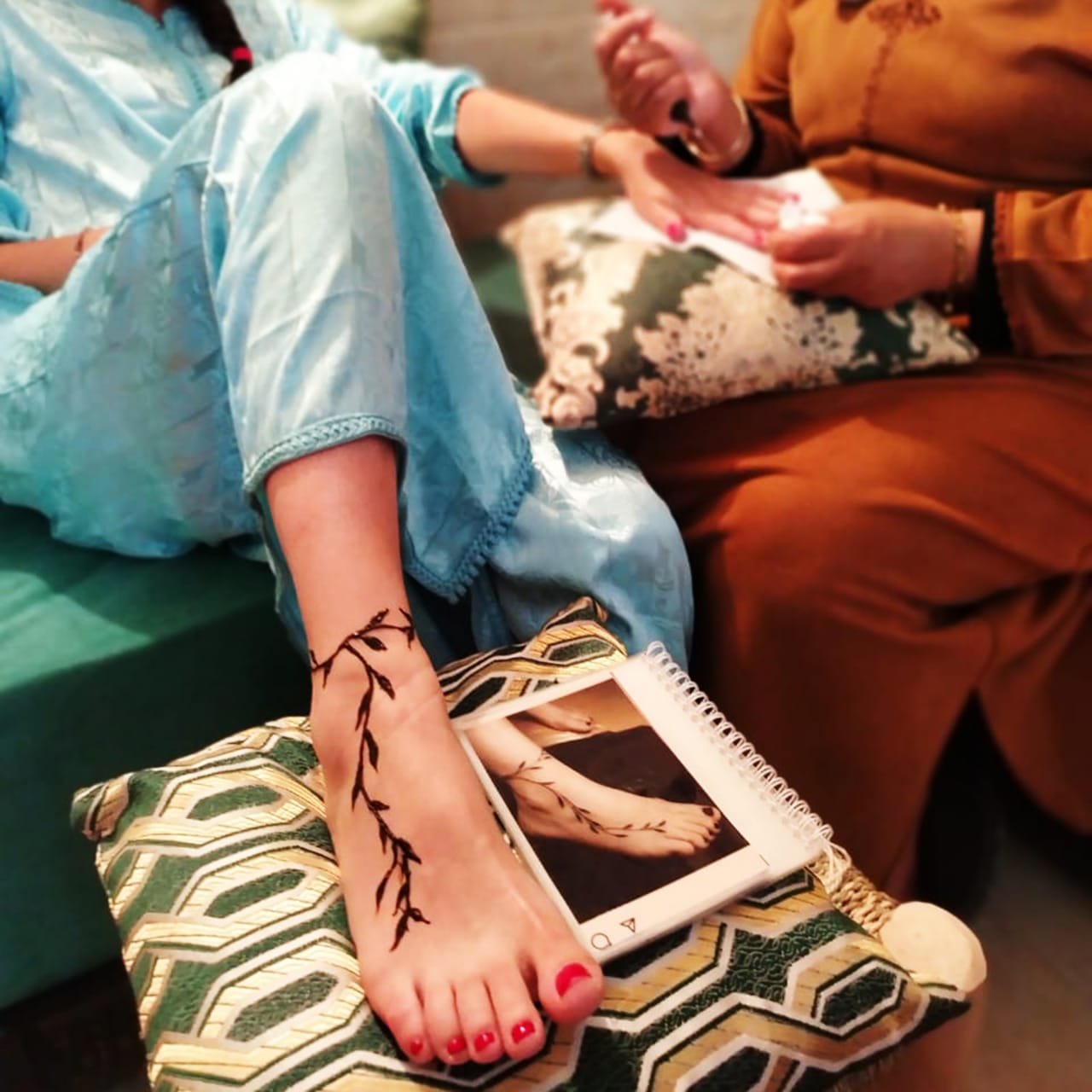 Enhance your henna experience with a soothing cup of Moroccan mint tea or coffee, creating a warm and friendly atmosphere perfect for sharing moments with friends.